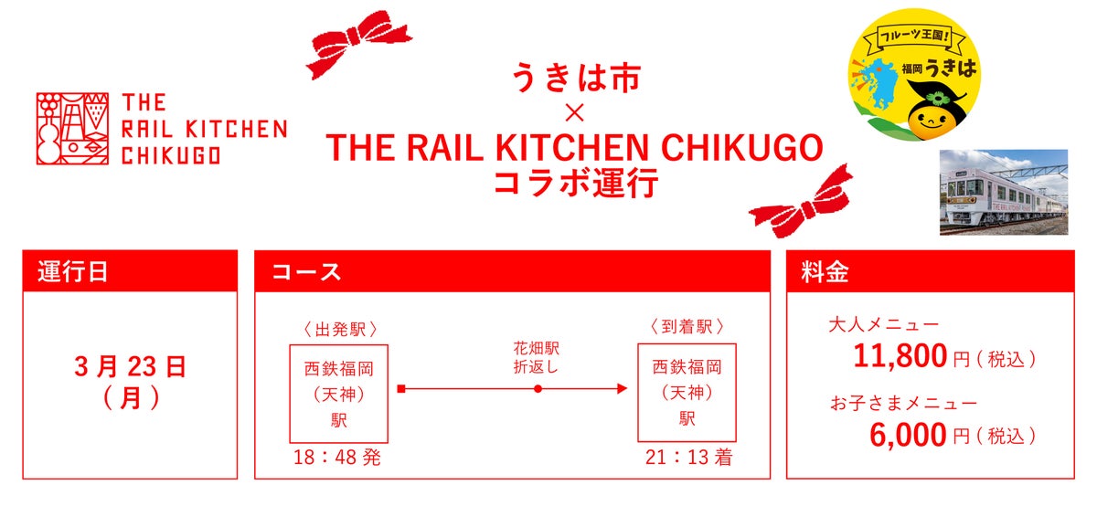 地域を味わう旅列車「THE RAIL KITCHEN CHIKUGO」では、2026年3月23日(月)に、うきは市×THE RAIL KITCHEN CHIKUGOコラボ運行を開催します。