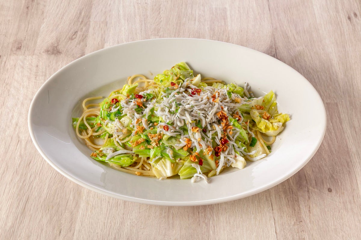春キャベツの甘みと釜揚げしらすとアンチョビの塩気がベストマッチです。良く冷えた白ワインと合わせても相性抜群です。
