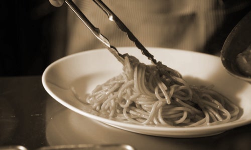 お客様の一人ひとり誰もが、「壁の穴」のメニュー・プロデューサー料理はつねにコックとお客様がコミュニケーションをとりながらお客様が好むものを提供すべきだと「壁の穴」は考えています。創業者・成松孝安は、麺が茹であがるまでの間に、お客様と“ソースはこれを使ったらおいしいのでは?”
