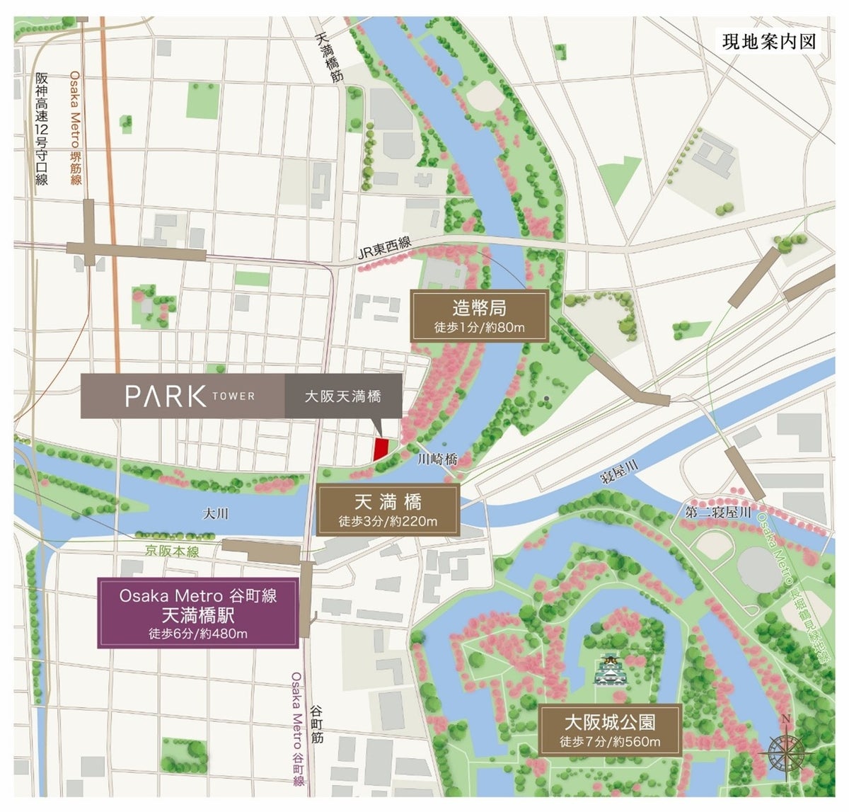 本物件は水都大阪を象徴する大川を望む、地上30階建・総戸数161戸のタワーレジデンスです。南・東二方向に広がるリバーフロントに加え、春は大阪を代表する桜の名所、夏は日本三大祭りの一つ「天神祭」の船渡御や奉納花火が川面を彩る稀少性の高い立地で、Osaka Metro谷町線・京阪本線・京阪中之島線「天満橋」駅徒歩6分をはじめとする5駅5路線が利用できることから、「水都大阪」ならではの魅力を最大限に享受できるライフスタイルの提供を目指します。