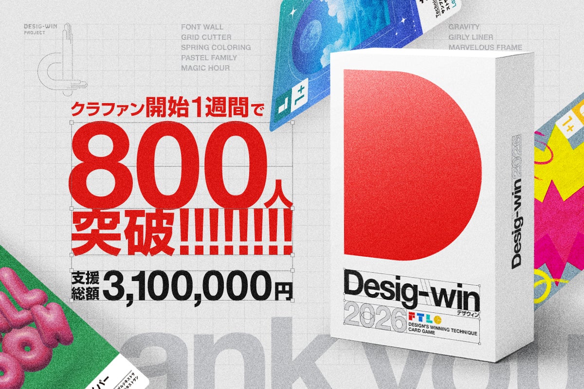 株式会社NASU(本社:大阪市中央区、代表取締役:前田高志)が運営するオンラインコミュニティ「前田デザイン室(マエデ。)」は、2026年2月14日よりCAMPFIREにて開始したクラウドファンディング『Desig-win 2026(デザウィン2026)』が、開始1週間で支援者800人、支援総額3,100,000円を突破したことをお知らせします。本作は、デザインの技法や思考法を“必殺技”として収録したカードゲームであり、すべてのデザイン現場の「標準装備」となることを目指しています。
