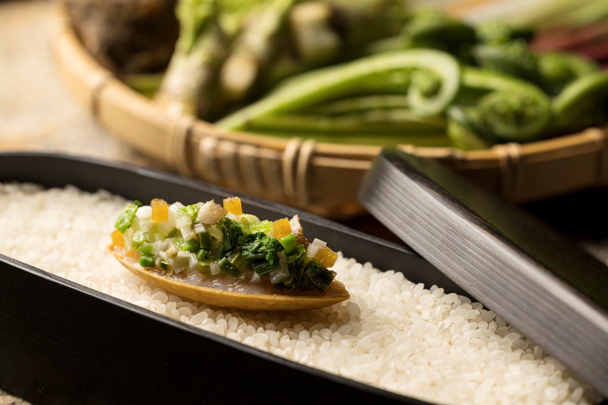 岩手の「うこぎのほろほろ」から着想を得た、春の山菜を楽しむ前菜