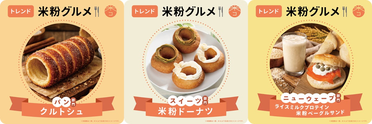 「トレンド米粉グルメ」は、米粉を扱う事業者や、一般消費者が思う「2026年に流行すると思う(流行させたい)米粉グルメ」のことで、「パン部門」「スイーツ部門」「ニューウェーブ部門」の3部門から選出します。