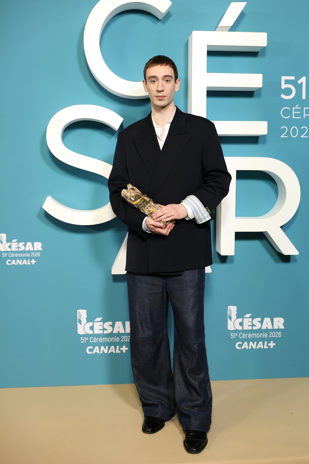 2026年2月26日、フランス・パリで開催された第51回セザール賞の授賞式にて、最優秀新人男優賞を受賞したロエベのブランド アンバサダーであるテオドール・ペルランが、ジャック・マッコローとラザロ・ヘルナンデスによるロエベを着用しました。