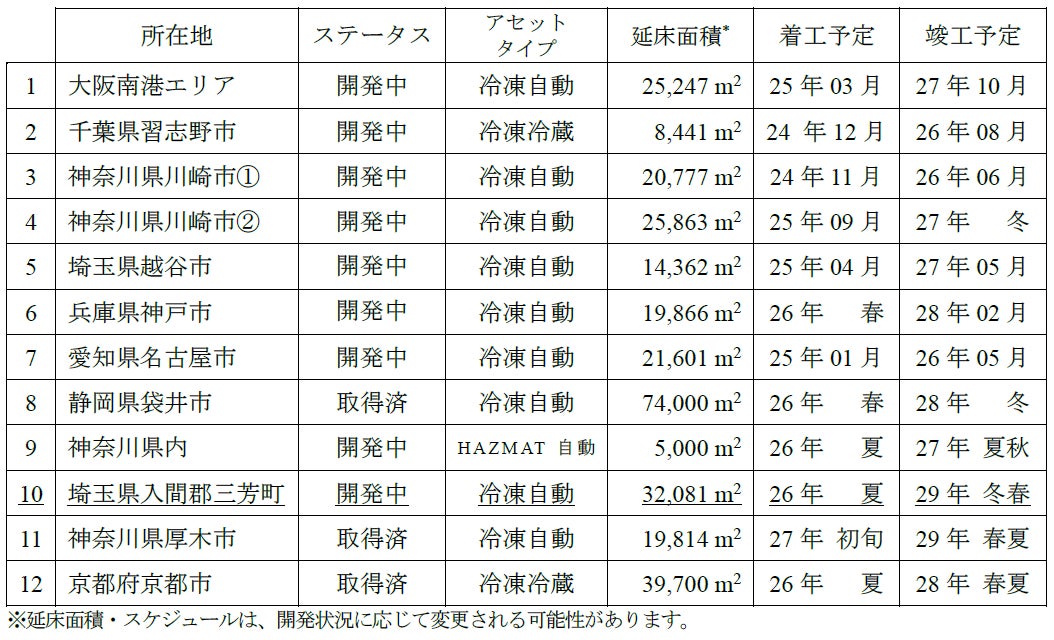 ■物流施設開発予定物件一覧