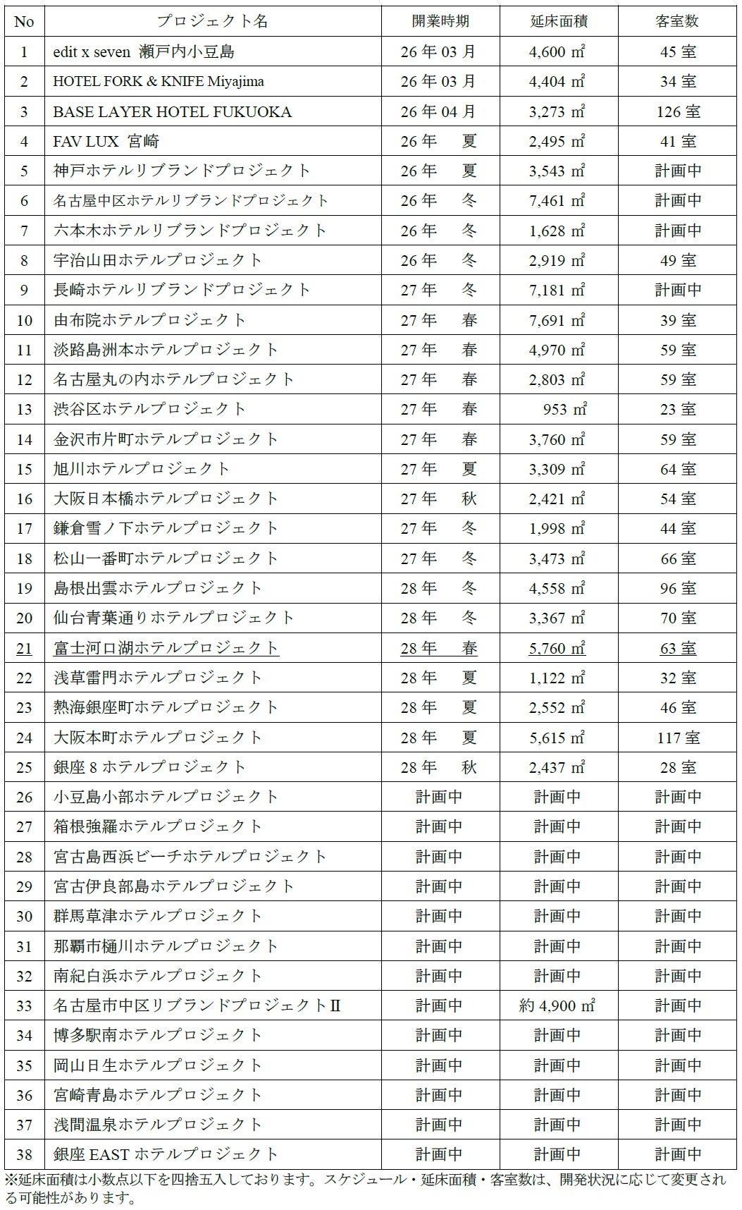 ■ホテル開発予定案件一覧