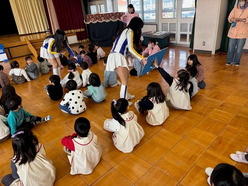 2026年2月18日(水)、シーホースくんとSuper GirlsのKAHO、NANAKAが東栄こども園(安城市)を訪問し、園児の皆さんと一緒にクイズやダンスを楽しみました。