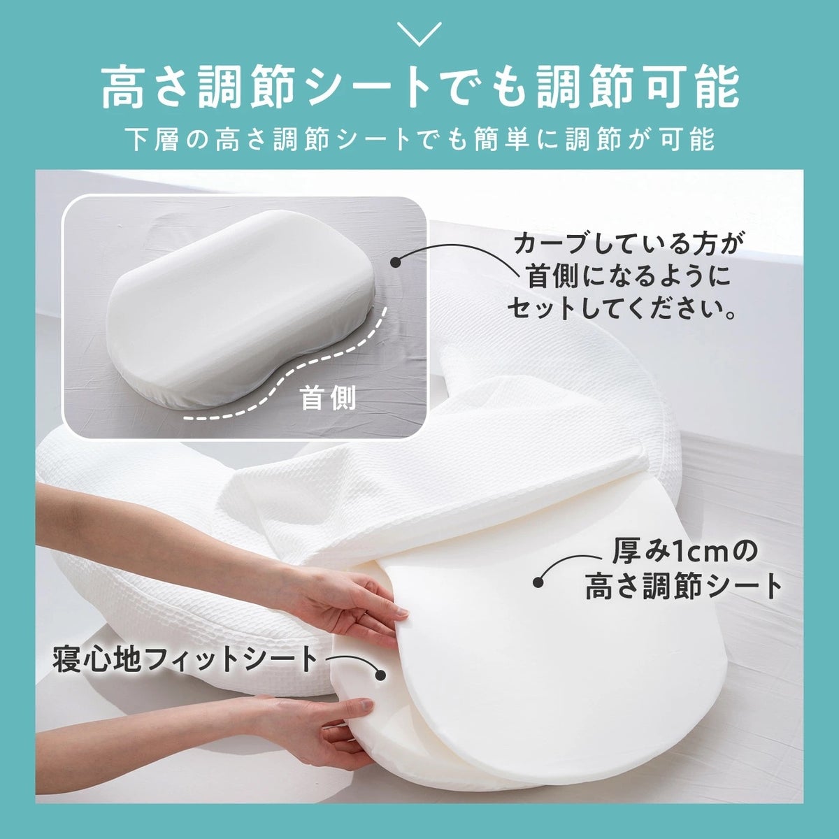 頭部にはふんわりと包み込むわた素材を使用し、下層にはウレタンを組み合わせた「わた×ウレタン構造」を採用。やさしい感触と安定感のバランスを追求しました。