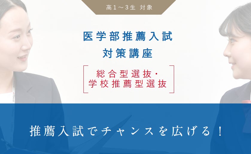 メディックTOMASでは、こうした入試環境の変化を踏まえ、総合型選抜・学校推薦型選抜と一般入試を並行して対策できる「医学部推薦入試対策講座[総合型選抜・学校推薦型選抜]」を開講しています。