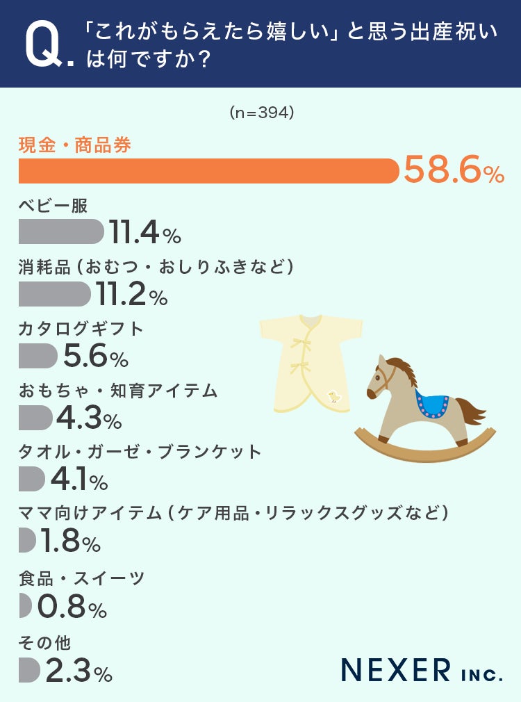 ■58.6%が「これがもらえたら嬉しい」出産祝いは「現金・商品券」と回答