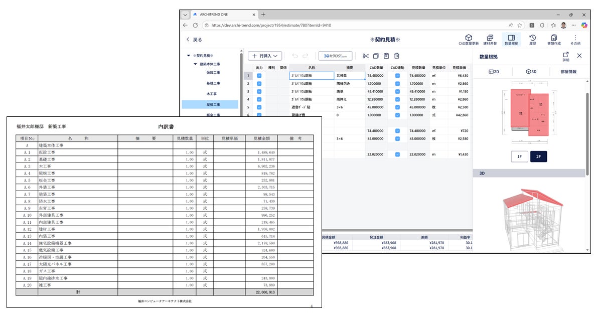 積算革命、ここに始動! 見積工数を最大80%削減する※クラウド積算誕生!ARCHITREND ONEの新機能「積算オプション」3月25日発売