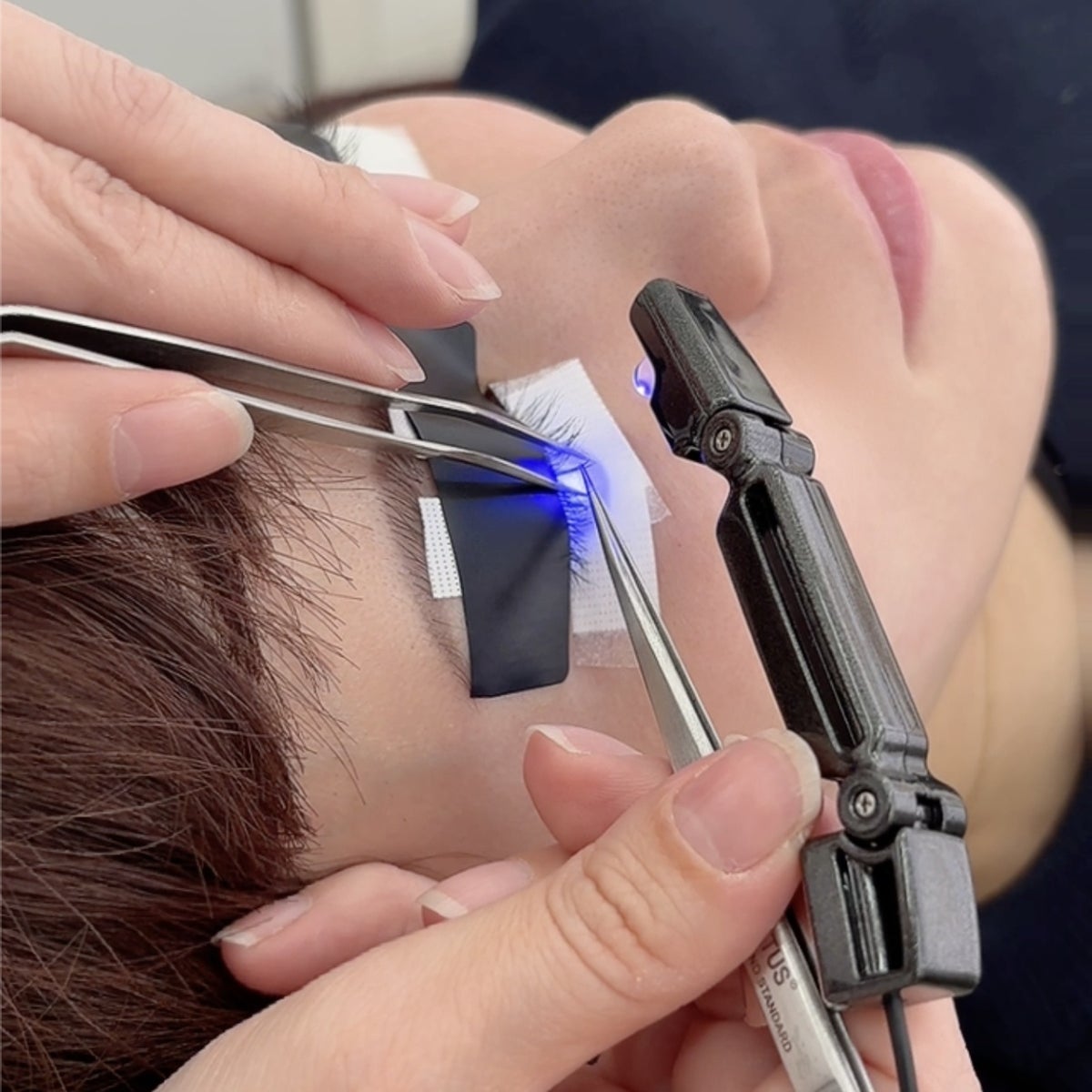 ツイーザーに取り付けるタイプのため、極限まで小型化・軽量化し、施術者の手首への負担を軽減します。また、照射位置のズレがまつげエクステのとれやすさに影響するため、照射範囲を広めにすることで、施術者のスキルを問わず、安定した仕上がりをサポートします。このような“必要な場所に、必要なだけの光を届ける”性能は、配光制御や可動部の機構など、テクニカル照明の現場で培った当社の光学設計技術を応用することで実現しました。