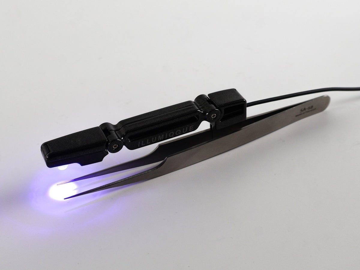 本製品では、紫外線(UV)ではなく、可視光線に分類されるLED 405nmを採用しています。この波長は人体に影響がなく安全性が認められており、高出力で照射することで、グルー硬化を2秒以下に短縮することが可能となりました。(※従来の据え置き型LEDランプでは3~5秒で硬化)