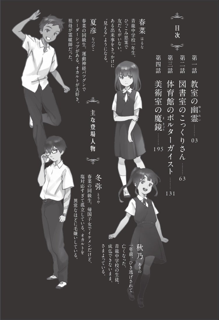予想を裏切る展開の連続、深まる四人の絆、悲しい過去もみんなとなら乗り越えられる! 推理と冒険、友情と感動がつまった青春オカルトミステリー!