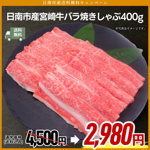 日南市産宮崎牛バラ焼きしゃぶ400g通常価格4,500円
