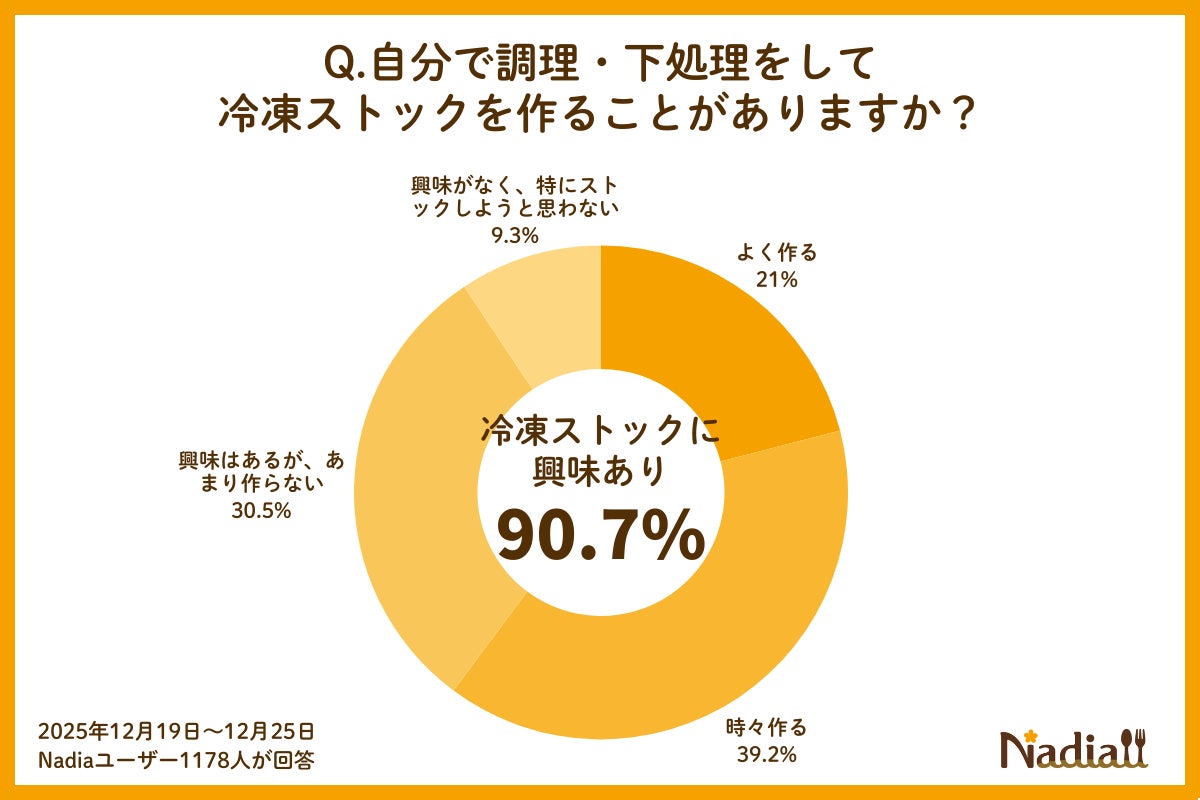 Nadia株式会社(東京都港区/代表取締役社長 葛城嘉紀)にて運営している料理メディア「Nadia(ナディア)」(URL:https://oceans-nadia.com/)は、「冷凍ストック」についてアンケート調査(※1)を行いました。