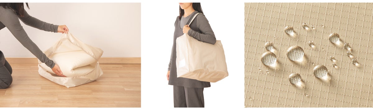 さらに、付属の収納バッグには「はっ水加工」を施しており、急な雨の日でも安心です。