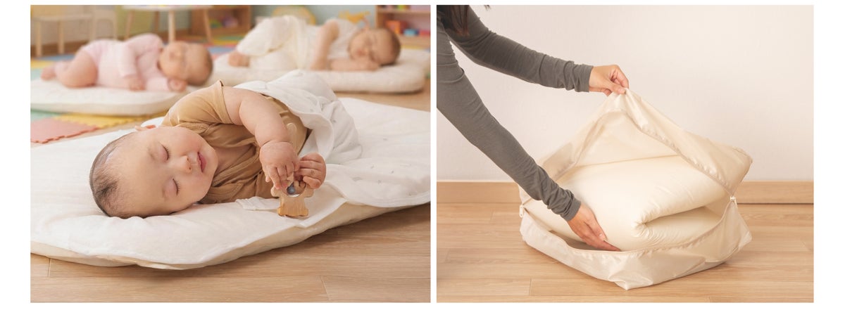 今回ご紹介するのは、ママの声を聞くモニター会から生まれた「持ち運びが楽なお昼寝ふとんセット(3点・5点)」です。