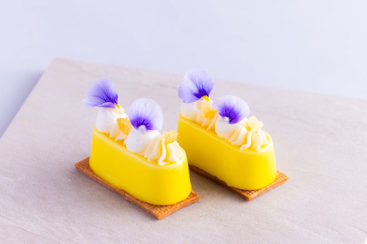 その他にも、さくさくのタルト生地に濃厚なカスタードクリームを絞り、フレッシュブルーベリーを贅沢にのせ、華やかな香り立つスミレのジュレをまとった「バイオレットタルト」や、しっとりと焼き上げたベイクドチーズケーキにコク豊かなクリームチーズホイップをふんわりと重ね、蜂の巣模様のミルクチョコレートをあしらった「ハニカムベイクドチーズケーキ」など見た目も可憐で愛らしいアフタヌーンティーの世界観をぐっと引き立てます。はちみつのやさしい甘さと、レモンの爽やかな香りを多彩に楽しめる春のときめきを詰め込んだラインアップです。