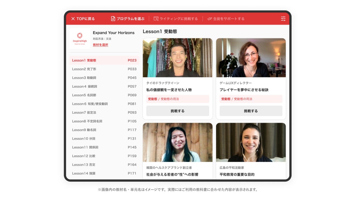 このたび、世界中の大人の“生きた英語”にふれ、英語を学ぶ主体性を引き出す『Inspire High English』を開発し、全国の中学校・高等学校に提供します。