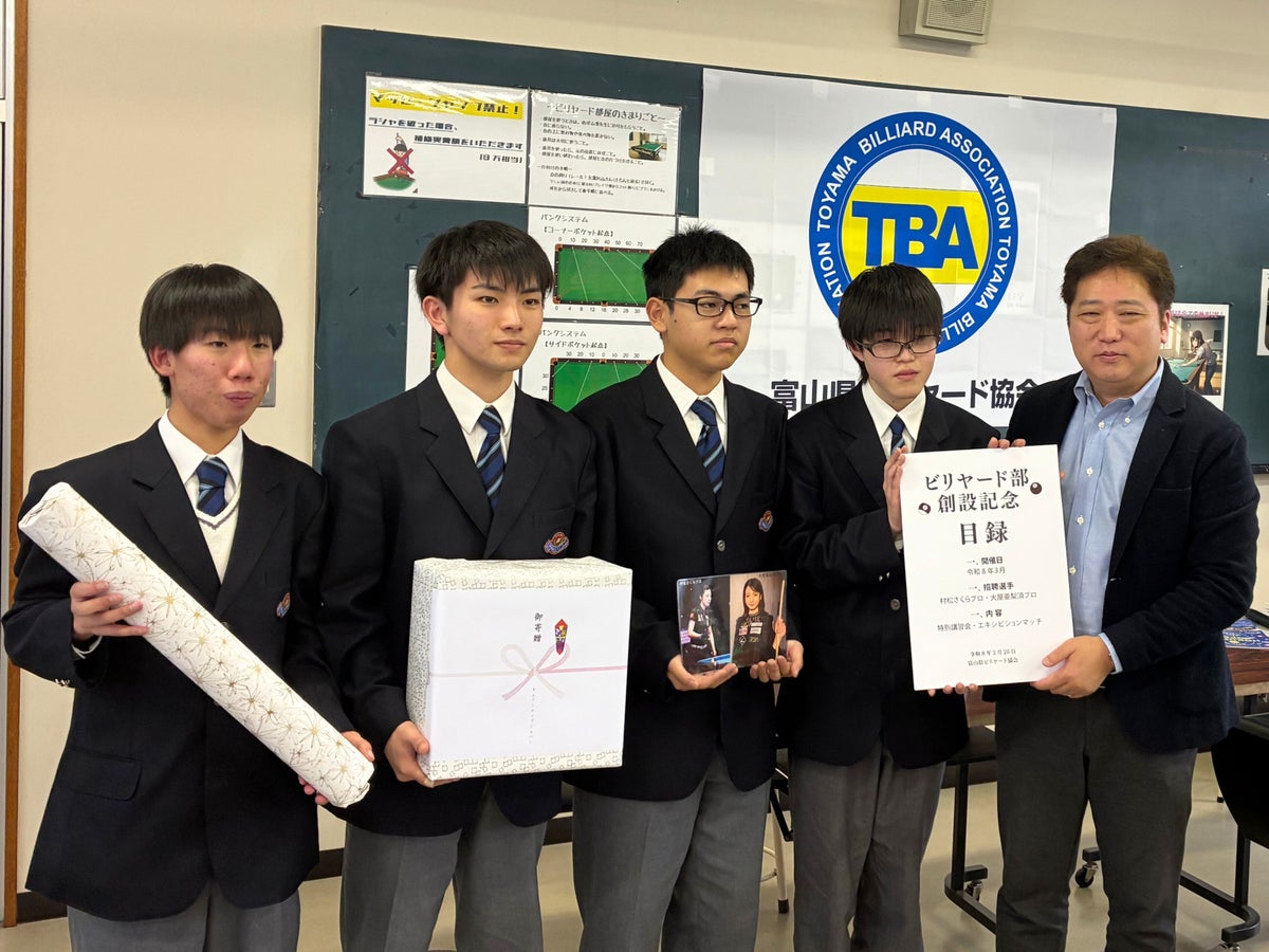 2026年4月、富山県魚津市の学校法人荒井学園新川高等学校(以下、新川高校)に、公認のビリヤード部が誕生します。これに先立ち、2026年2月26日、新川高校にて報道関係者に向けた連携説明会を開催しました。当日は、富山県ビリヤード協会理事長、新川高校学校長、ビリヤード部顧問および部員が出席し、本プロジェクトの概要や今後の活動について説明が行われました。