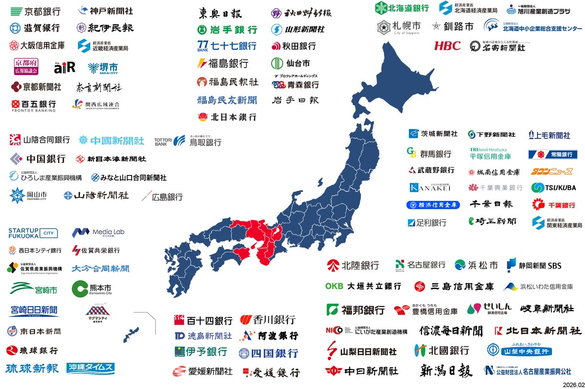 「PR TIMES」は、地方地域発の情報流通を目指し、全国各地域に根差す金融機関やメディア・自治体と提携を進めています。本協定の締結により、当社が地域企業や自治体等団体と地方情報流通に向けたアライアンスは全国47都道府県で100例以上に拡大するに至りました(地方金融機関43例(35行・8信金)、地方メディア40社、官公庁・自治体等1道1府3県13市5機関の合計106例)。