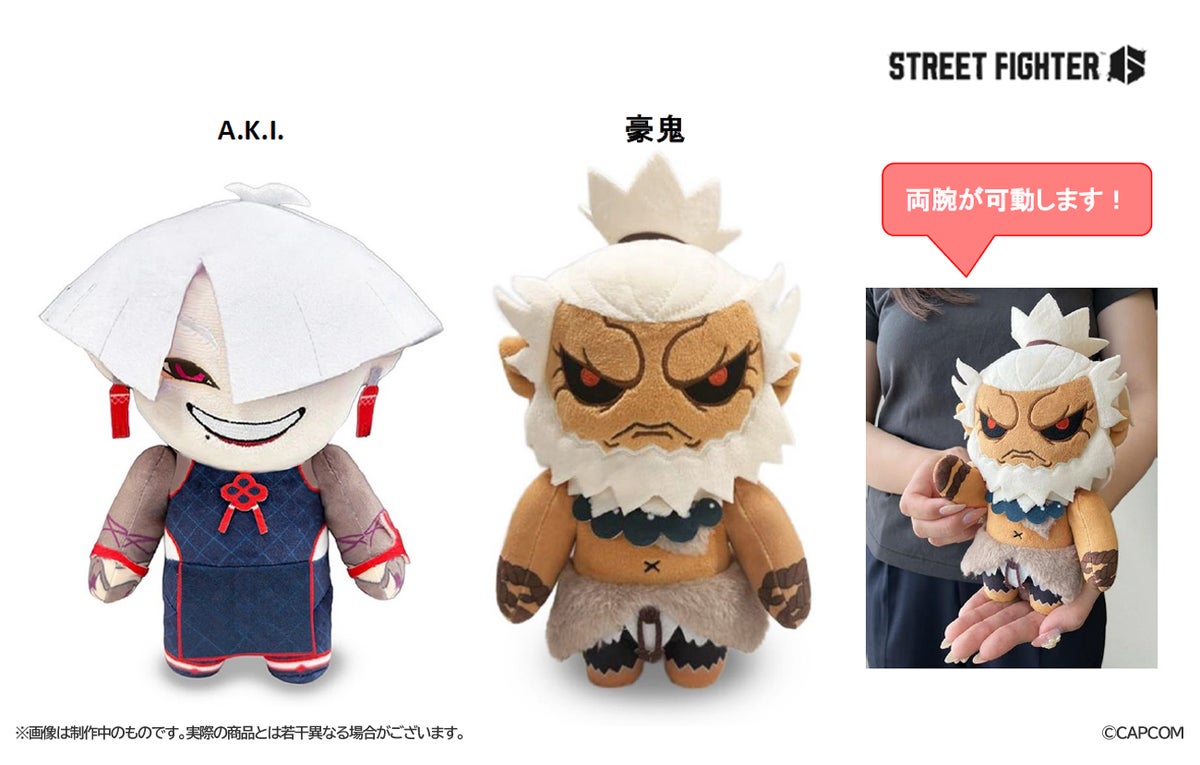 第3弾は「A.K.I.」、「豪鬼」をラインナップ! デフォルメデザインは『ストリートファイター6』デザインチームの「さくたも」による描き下ろし! 両腕が可動するギミックが付いているので、キャラクターにポーズを取らせてお楽しみいただけます。可愛くデフォルメされたキャラクターたちをぜひお迎えください!