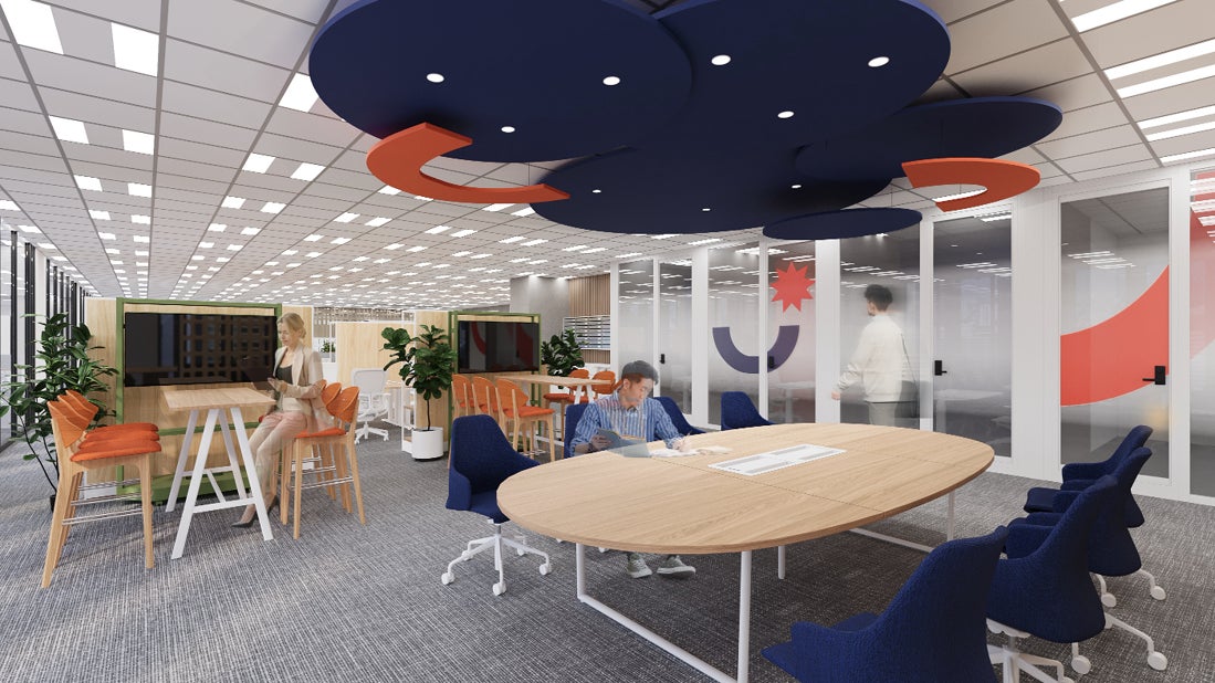 ワークプレイスビジョンの実現を可能にするABW(Activity Based Working)を導入。社員がその時の業務内容や気分に合わせて働く場所を自由に選べるワークスペースやコラボレーションスペースを用意。