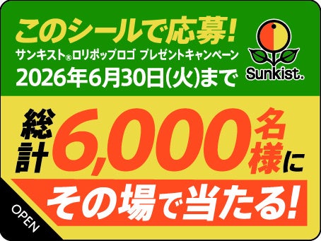 カリフォルニア州とアリゾナ州の「シトラス(柑橘類)」の生産農家によって構成された世界で最も歴史のある、最大規模の柑橘類生産出荷協同組合であるサンキスト(Sunkist)は、対象のサンキスト(R)商品(オレンジ・レモンなどの柑橘類)に付いているキャンペーンシールを集めて応募する「サンキスト(R)ロリポップロゴ プレゼントキャンペーン」を実施いたします。