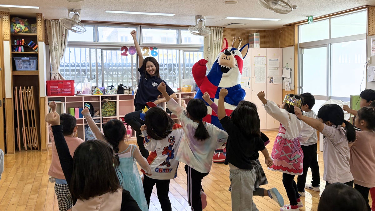 今回の訪問では、ゴーディーと一緒にダンス交流会やボール遊びを楽しんだほか、節分行事やお誕生日会、親子交流会などのイベントにも参加し、多くの子どもたちやご家族の皆さまと交流しました。