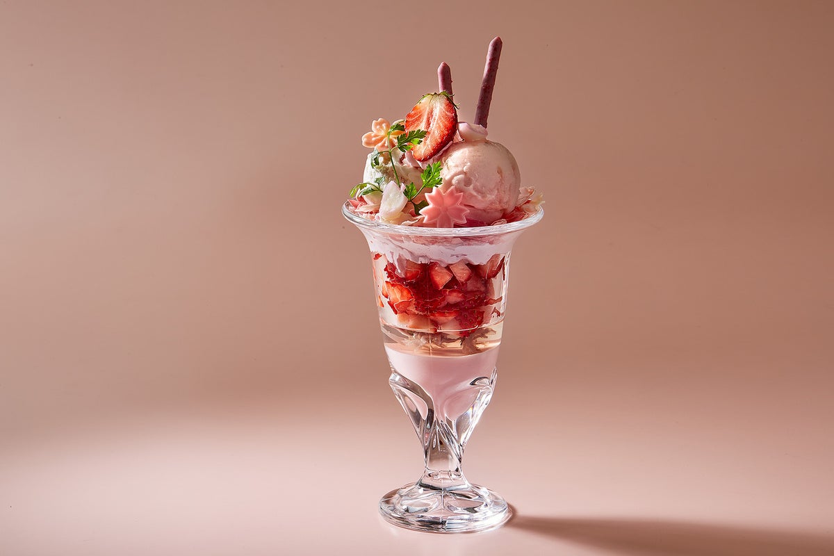 旬の苺と桜の風味を存分に楽しめる彩り華やかなパフェ。