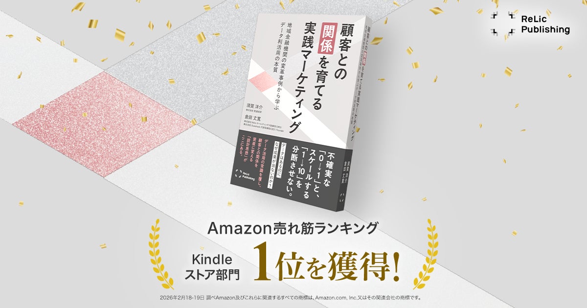 事業共創カンパニーである株式会社Relic(本社:東京都渋谷区、代表取締役CEO:北嶋貴朗、以下、Relic)は、自社が展開する出版レーベル「Relic Publishing」から、第3弾書籍『顧客との「関係」を育てる実践マーケティング──地域金融機関の変革事例から学ぶデータ利活用の本質』(著:倉田丈寛・須賀洋介)を2026年2月18日に刊行し、新たにペーパーバック版の販売も開始したことをお知らせします。
