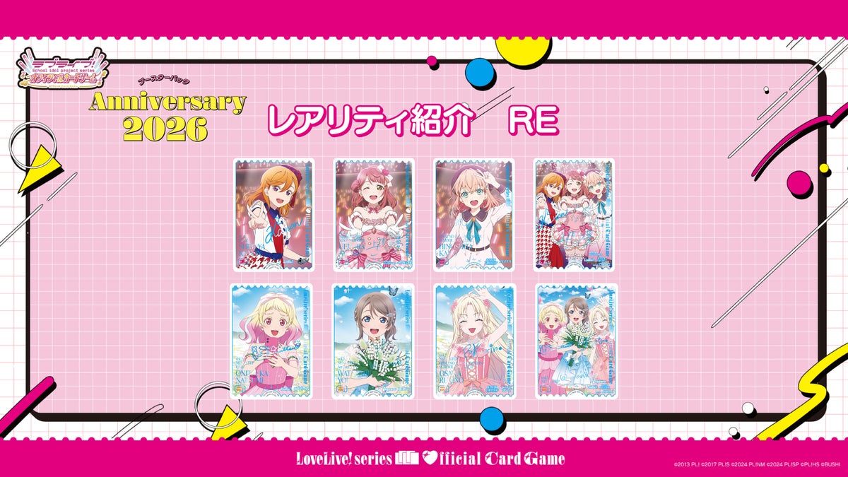 株式会社ブシロード(本社:東京都中野区、代表取締役社長:木谷高明)は、「ラブライブ!シリーズ オフィシャルカードゲーム(以下ラブカ)」から、「ブースターパック Anniversary 2026」と「スタートデッキ ラブライブ!サンシャイン!!」、「スタートデッキ ラブライブ!蓮ノ空女学院スクールアイドルクラブ」を本日2月28日(土)より発売いたしました。あわせて、本商品に収録される注目カード情報をお知らせいたします。またラブカ公式Xにて、「ブースターパック Anniversary 2026」の発売を記念したキャンペーンを開催しております。