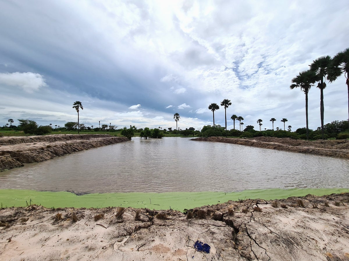 自然にできていたくぼ地をため池として整備。これまでの倍以上の貯水ができるようになった(セネガル)