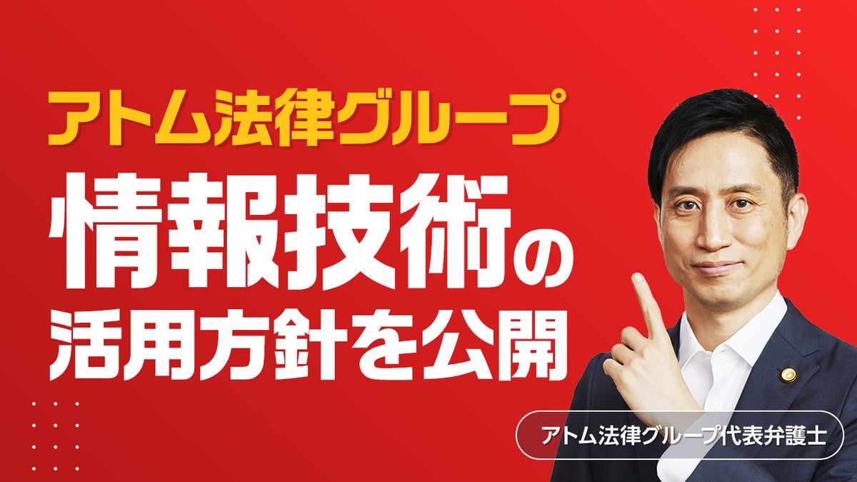 アトム法律グループ(所在地:東京都千代田区、代表:岡野武志)は、創業当初よりITを積極的に活用し業務革新を進めてきた実績を踏まえ、依頼者の皆様に一層安心して法的サービスをご利用いただくため、「情報技術(生成AI等)の活用に関する基本方針」を策定・公開いたしました。