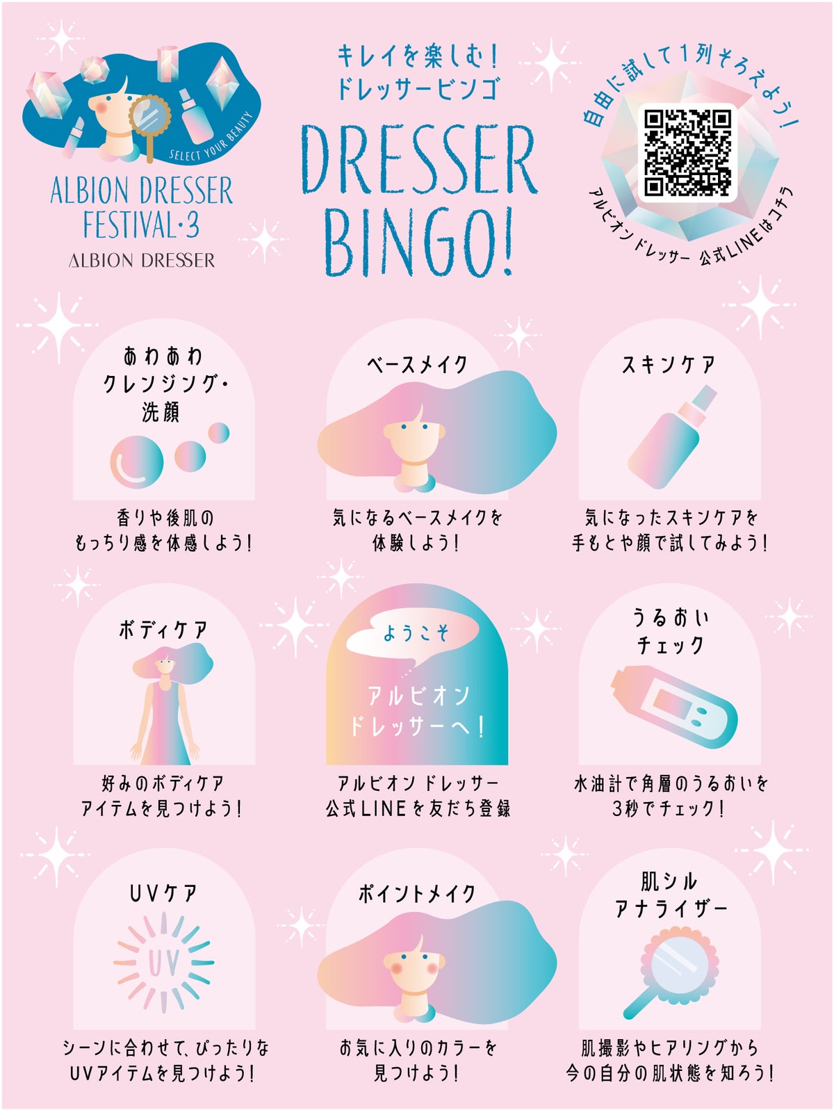 “キレイを自由に” をコンセプトにしたALBIONのセレクトコスメショップ、ALBION DRESSER(アルビオン ドレッサー)店舗にて、「自由に試して、楽しく選べる」体験型イベントを2026年3月1日(日)~31日(火) に開催いたします。