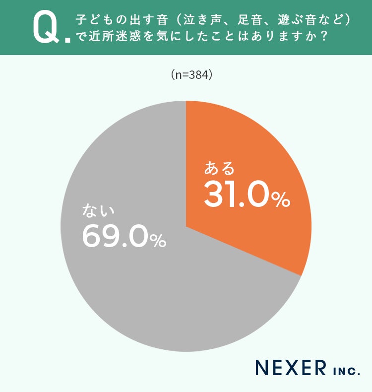 ■31.0%が、子どもの出す音で「近所迷惑を気にしたことがある」と回答