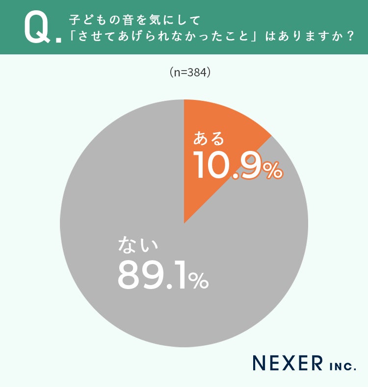 ■10.9%が、子どもの音を気にして「させてあげられなかったことがある」と回答