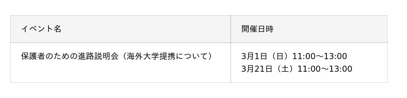 ■保護者の方向けイベント開催日程