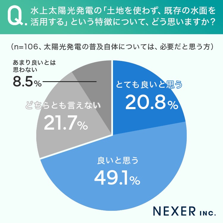 続いて、水上太陽光発電の「土地を使わず、既存の水面を活用する」という特徴について、どう感じるかを聞いてみました。
