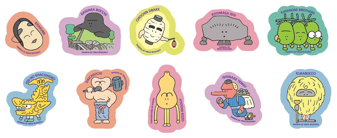 名古屋城の正門付近にある樹齢 600 年のカヤの木から着想を得たキャラクターや、 戦災から本丸御殿の障壁画や天井絵を守った乃木倉庫にまつわるキャラクターなど、 アクリルキーホルダーに登場する妖怪たちは、名古屋城の歴史や現存する遺構など をモチーフに生まれました。名古屋城ならではのおみやげとして楽しんでいただけ るのも魅力のひとつです。 さらに、キャラクターが生まれた場所が実際に城内に存在しているのもおすすめの ポイント。キャラクターの “聖地” を巡りながら写真を撮ったり、物語の背景に思い を巡らせたりと、楽しみ方が広がります。また、カプセルトイならではの一期一会 の出会いもこの企画の魅力。どの妖怪と出会えるかというワクワク感とともに、自 分だけのお気に入りを見つけてみてください。キャラクター紹介