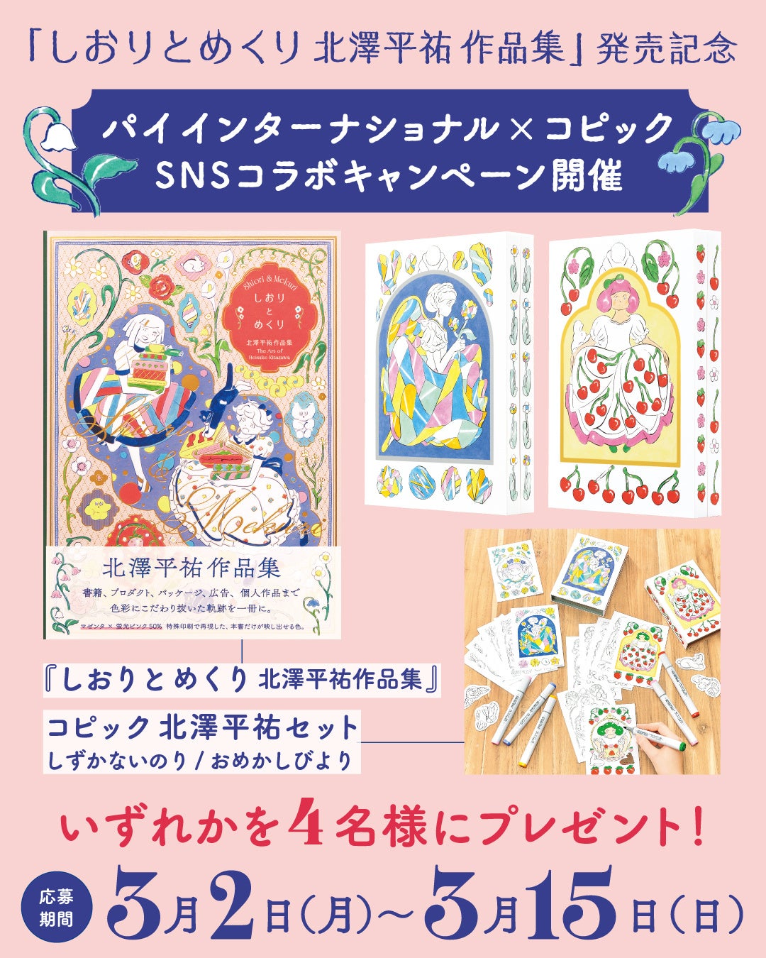 株式会社パイ インターナショナル(豊島区)は2026年2月20日発売『しおりとめくり 北澤平祐作品集』の刊行を記念し、株式会社トゥーマーカープロダクツの「コピック 北澤平祐セット」とコラボレーションによるSNSキャンペーンを実施いたします。