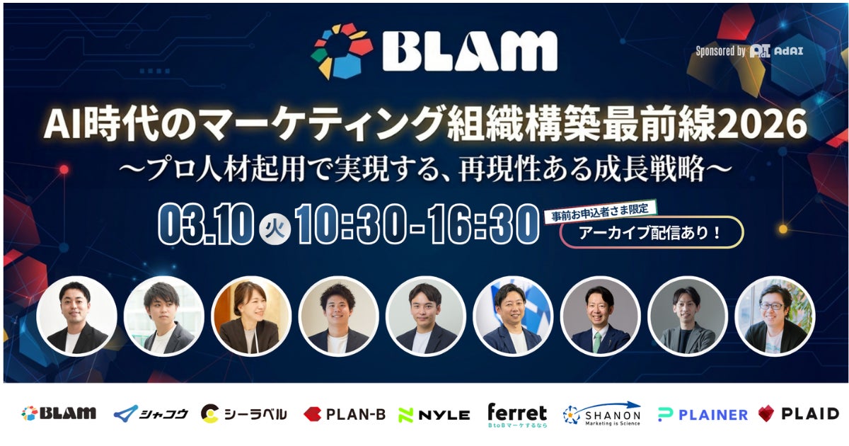 BtoBマーケティングのお困りごとをまるっと解決するサービス『ferret(フェレット)』を運営する株式会社ベーシック(本社:東京都千代田区、代表取締役:秋山 勝)は、2026年3月10日(火)10:30より、株式会社BLAM(本社:東京都品川区、代表取締役:杉生 遊)が主催するオンラインカンファレンス「AI時代のマーケティング組織構築 最前線2026 」に登壇いたします。
