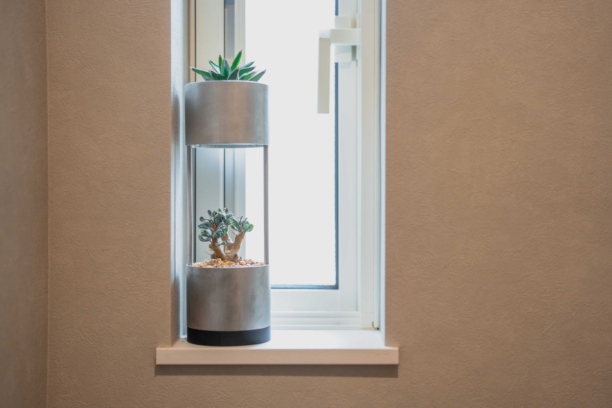 BAMBUNOは、多肉植物やサボテンなど小型の植物を日常空間に取り入れやすくするために開発されたポットです。竹の節をモチーフとしたデザインに、水門メーカーならではの精密加工技術を取り入れています。