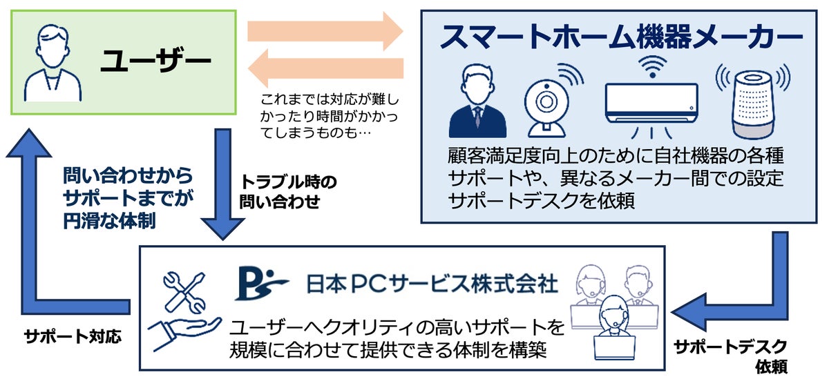 デジタルインフラの設定・修理・トラブル解決を行う日本PCサービス株式会社(本社:大阪府吹田市、代表取締役社長:家喜 信行、証券コード:6025、以下「当社」)は、2026年3月2日(月)よりスマートホーム機器メーカー、ハウスメーカーを対象にアフターサポート体制を簡単に構築できるサポートデスクサービスの提供を開始します。