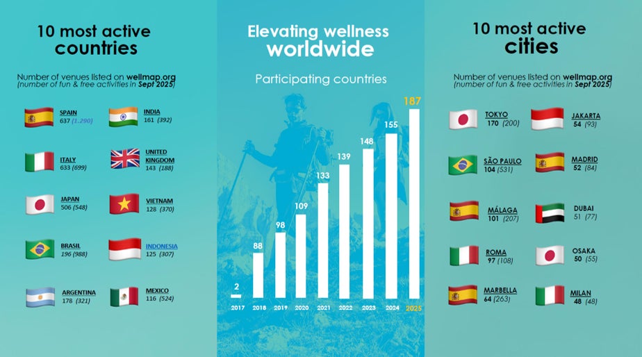 2016年にフランスで始まり、9回目となった2025年は、世界187ヶ国、2,012都市、10,000以上の会場で、ウェルネス体験が実施され、約50万人が参加しました。