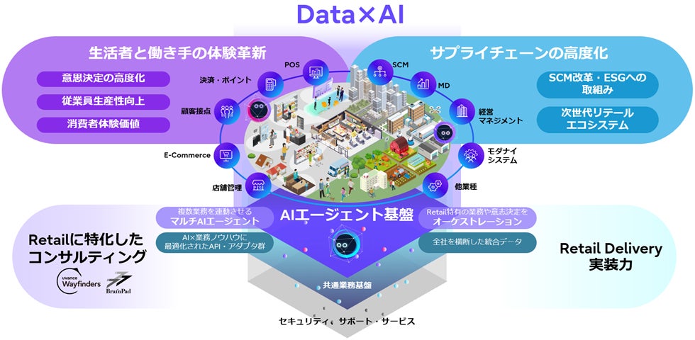 当社は、小売業のさらなる変革と競争力強化を支えるため、あらゆるデータを堅牢でセキュアなクラウド上に統合し、当社が培ってきた業務知見と実装力を生かして、AIエージェントをはじめとする先進テクノロジーを融合した 「Uvance for Retail」を提供します。データと業務を横断的につなぎ、現場の実行力と経営の意思決定をAIにより高度化することで、日本の小売業の持続的な成長に貢献していきます。
