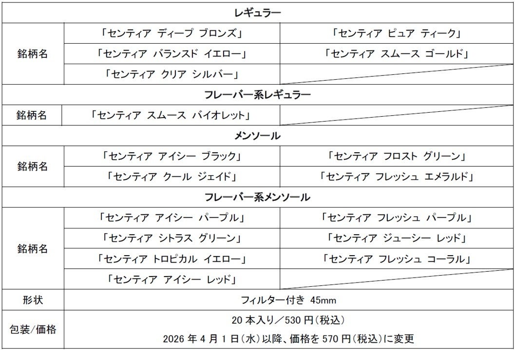 今回の「センティア パープル カプセル」の発売に伴い、「SENTIA(センティア)」製品のラインアップは全18銘柄となります。