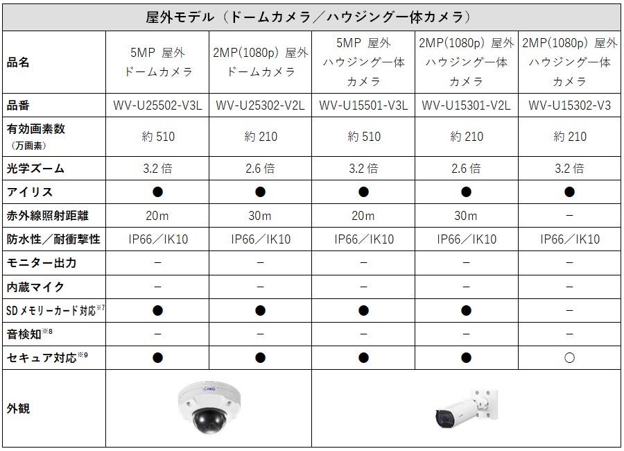 そのほか、屋内モデル全機種に内蔵マイクを標準装備し音声記録にも対応、高解像度5MP機種、赤外線(IR-LED)照射搭載機種、HDMI(※3)映像出力機能搭載機種も揃えました。