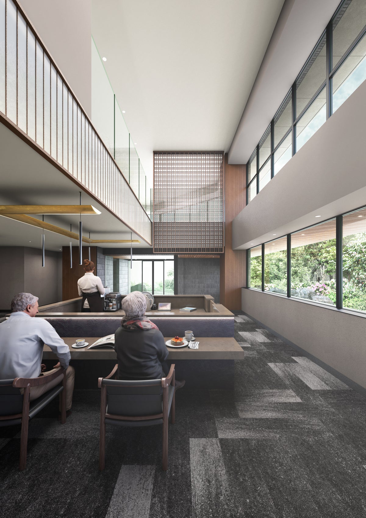 【完成イメージ】カフェラウンジを設えたエントランス